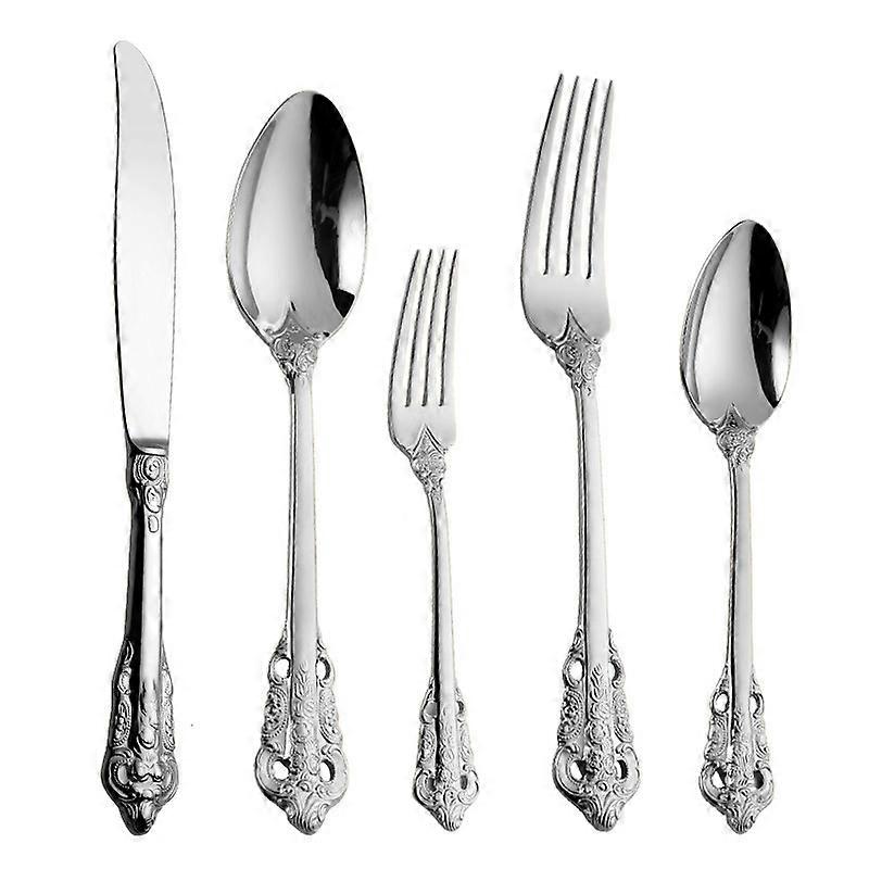 Silver Stainless Steel Utensil Cutlery Set 5 Piece Set Flatware Silverware Knife Fork Spoon Tableware Best Gift