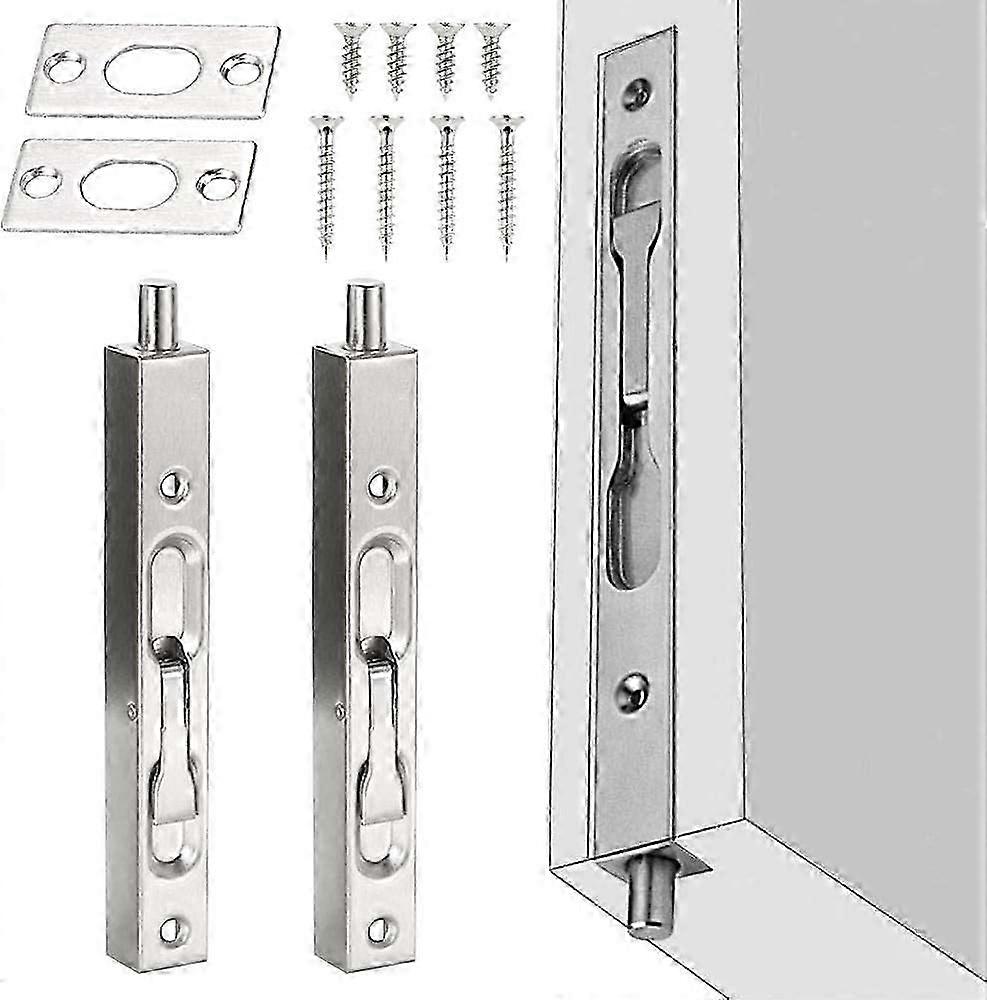 Silver Stainless Steel Concealed Slidebolt Lock - Rustproof Door Latch with Screws (15 * 1.6 * 2cm)