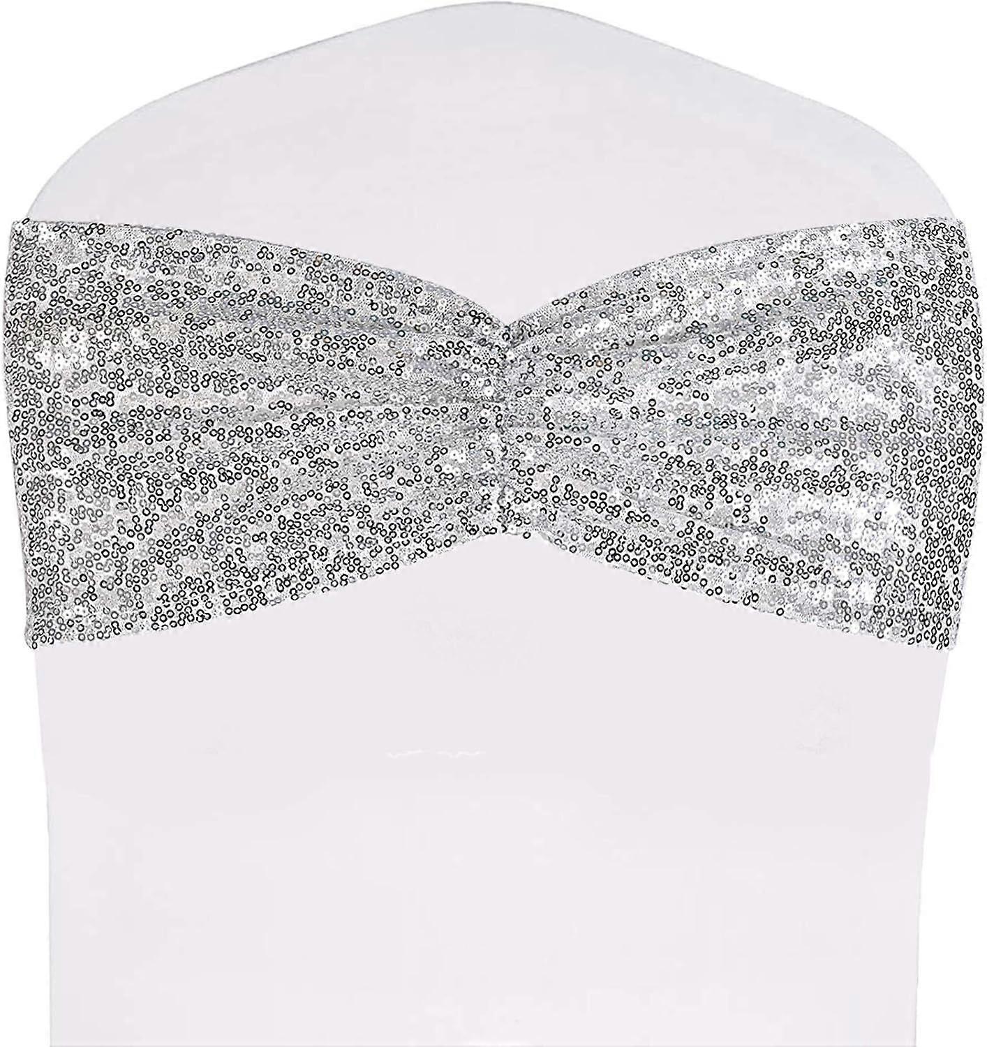 Perfect for: Wedding, reception, party decorations, festival decor, home decor, banquet, baby shower, birthday, Christmas, Thanksgiving.Size: 14 ihes length with 6 ihes width. The material can be stretched, suitable for chair back width: 13 to 14.5 ihes.Texture: The chair sashes are made of sequin fabric (3mm round sparkling sequins embroidered on fabric), which was solid and durable, the sequins are not easy to fall off. The backside is made into a bow shape, so it have a good decorative effect and practicality.After-sales: No need to worry about after-sales, feel free to contact us if you need anything.Luxury- glitter sparkle shiny decorative sequins, help to create a happy atmosphere.Sequin