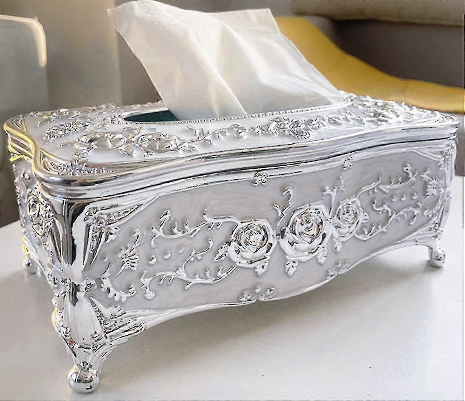 Silver Plastic Tissue Box Holder Cover for Bathroom & Office