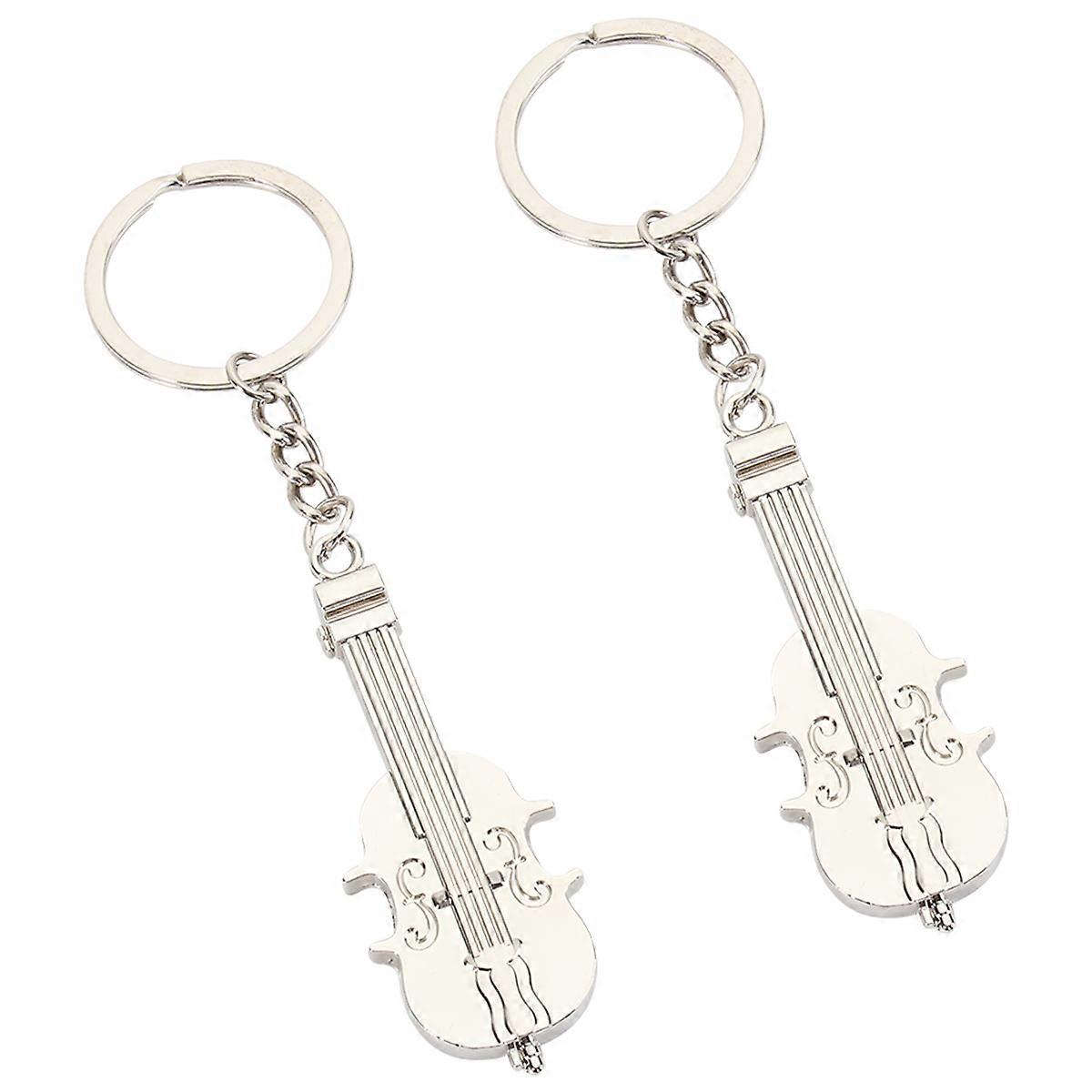 Silver Music Gift Keychain Durable Guitar Alloy Key Ring 2Pcs