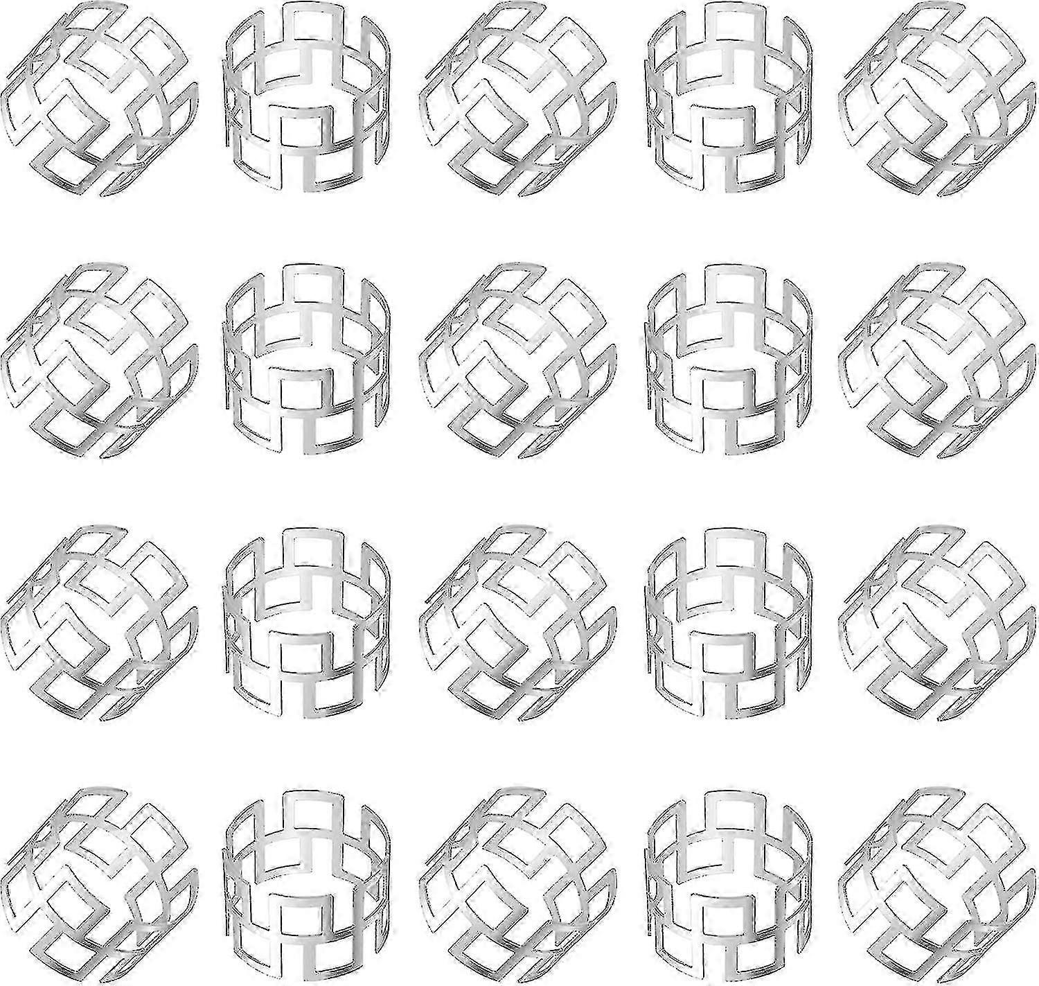 Silver Metal Napkin Rings Set - 20 Hollow Out Ring Holders for Table Decor