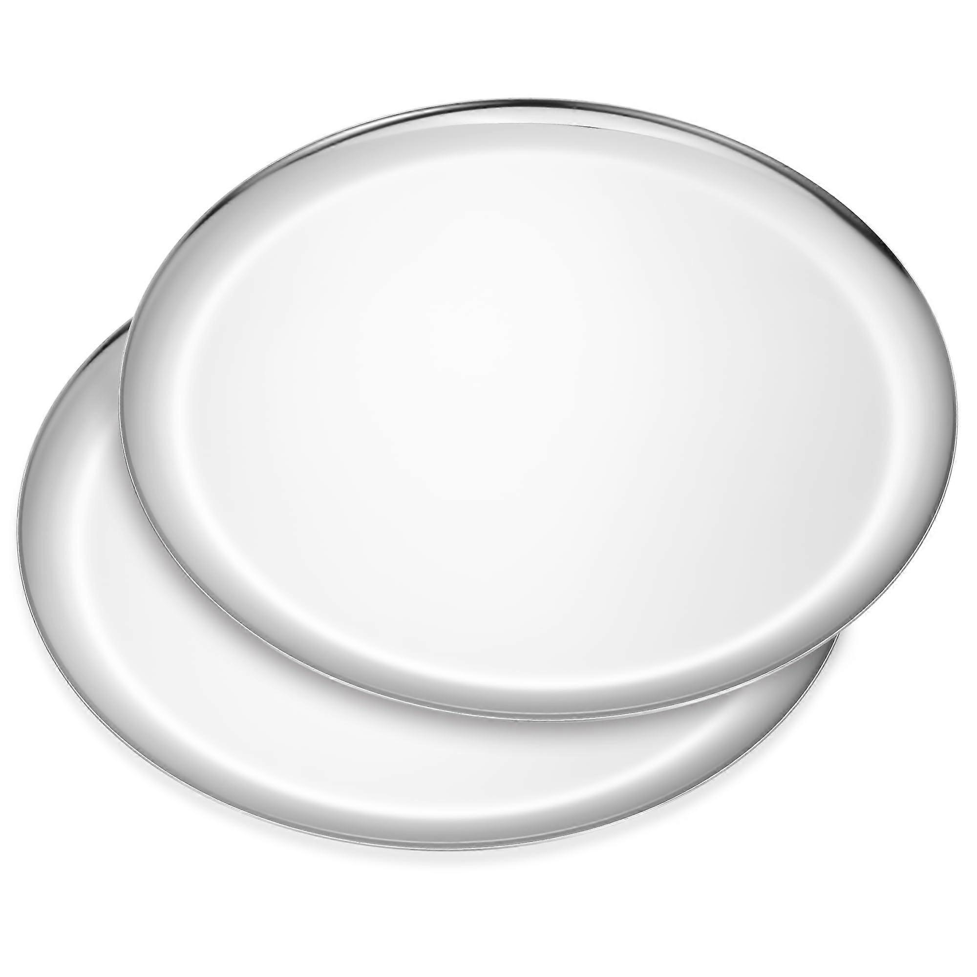 Pack of 2 Silver Round Stainless Steel Tray, Large Tray for Jewellery and Cosmetics, Serving Tray and Display Tray, Diameter 28 cm