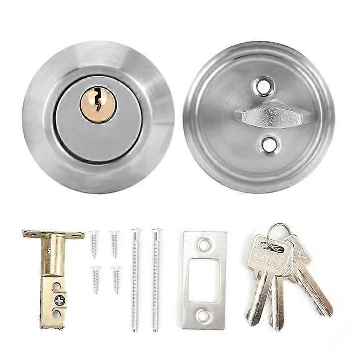 Single Cylinder Lock Stainless Steel Single Cylinder Security Anti-Theft Door Lock with Keys (Silver)