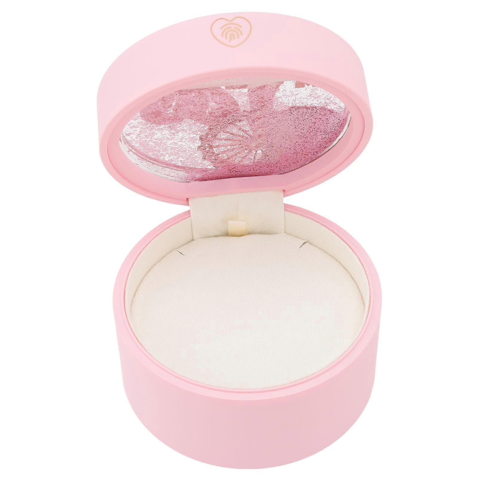Single Neckline Box Pendant Wheel Round Jewelry Gift Case LED Light Clamshell Small for Proposal Pink