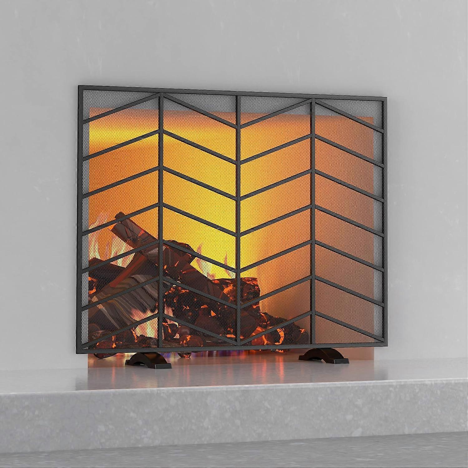 Single Panel Handcrafted Wrought Iron Mesh Chevron Fireplace Screen, Fire Spark Guard for Living Room, Bedroom Decor(Pewter)