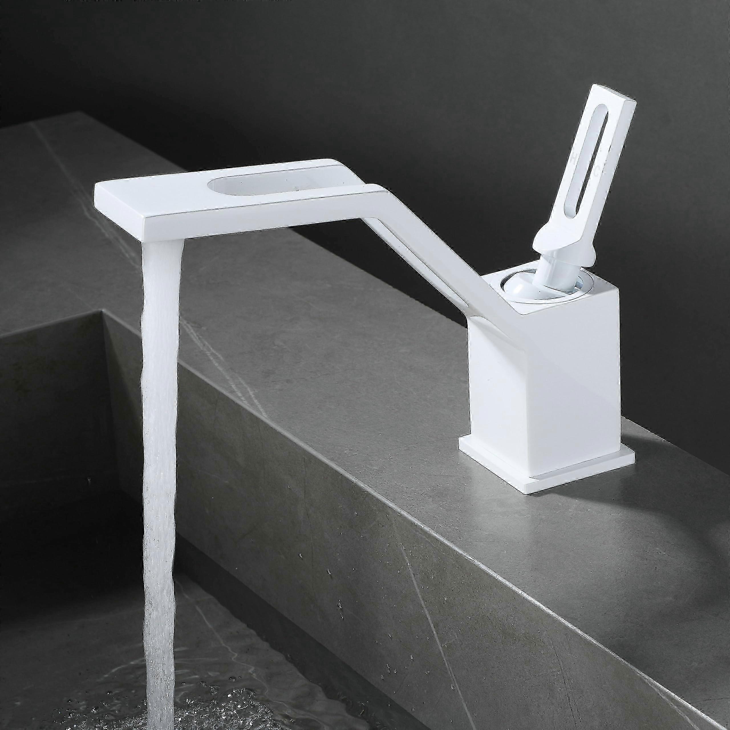 Single Handle White Finish Bathroom Sink Faucet for Certain Brands 1 Hole Mount Basin Mixer Tap Hot Cold Restroom Faucet Brass Model LK60509