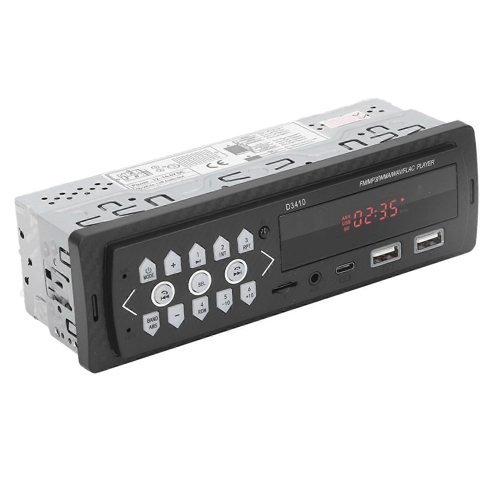 Single Din Car MP3 Radio Player Support U Disk AUX Bluetooth Memory Card HD Lossless Music USB Car Multimedia Player Item Type: Car MP3 Radio Player Material: Metal, Plastic Bluetooth Version: 5.0 Software Program: 5323 Receiving Frequency: 87.5‑108MHz Voltage: DC 12‑14.4V Output Power: 45W x 4 Playback Mode: U Disk, AUX, Bluetooth, Plug in Card Playback (Maximum Support for 128GB, Shipped Without Memory Card) Sound Output: 4 Way (2 Way Left Channel and 2 Way Right Channel) Sound Format: MP3, WMA, WAV, FLAC, APE Front USB Port: 1 x Type C Charging, 1 x USB Charging, 1 x USB2.0 Reading Installation Size: Approx. 178x50mm/7.01x1.97in Panel Size: Approx. 188x58mm/7.40x2.28in Player Depth: Approx. 55mm/2.17in Remote Control Battery: 2 x AAA Alkaline Batteries (not Included)