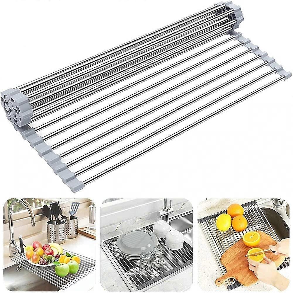Dish Drying Rack Over The Sink Kitchen Roll Up Dish Drainer with Anti-Slip Silicone for Draining Dish, Glass, Vegetables, Fruits, Large (20 Tubes 47 x