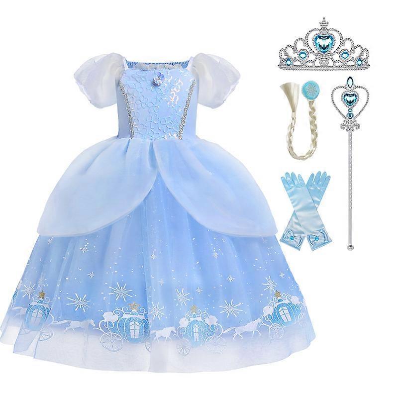 Cinderella Princess Cosplay Tulle Dress Kids Girl Ball Gown Birthday Party Ball Gown Fancy Dress Costume-Only 4pcs Accessories