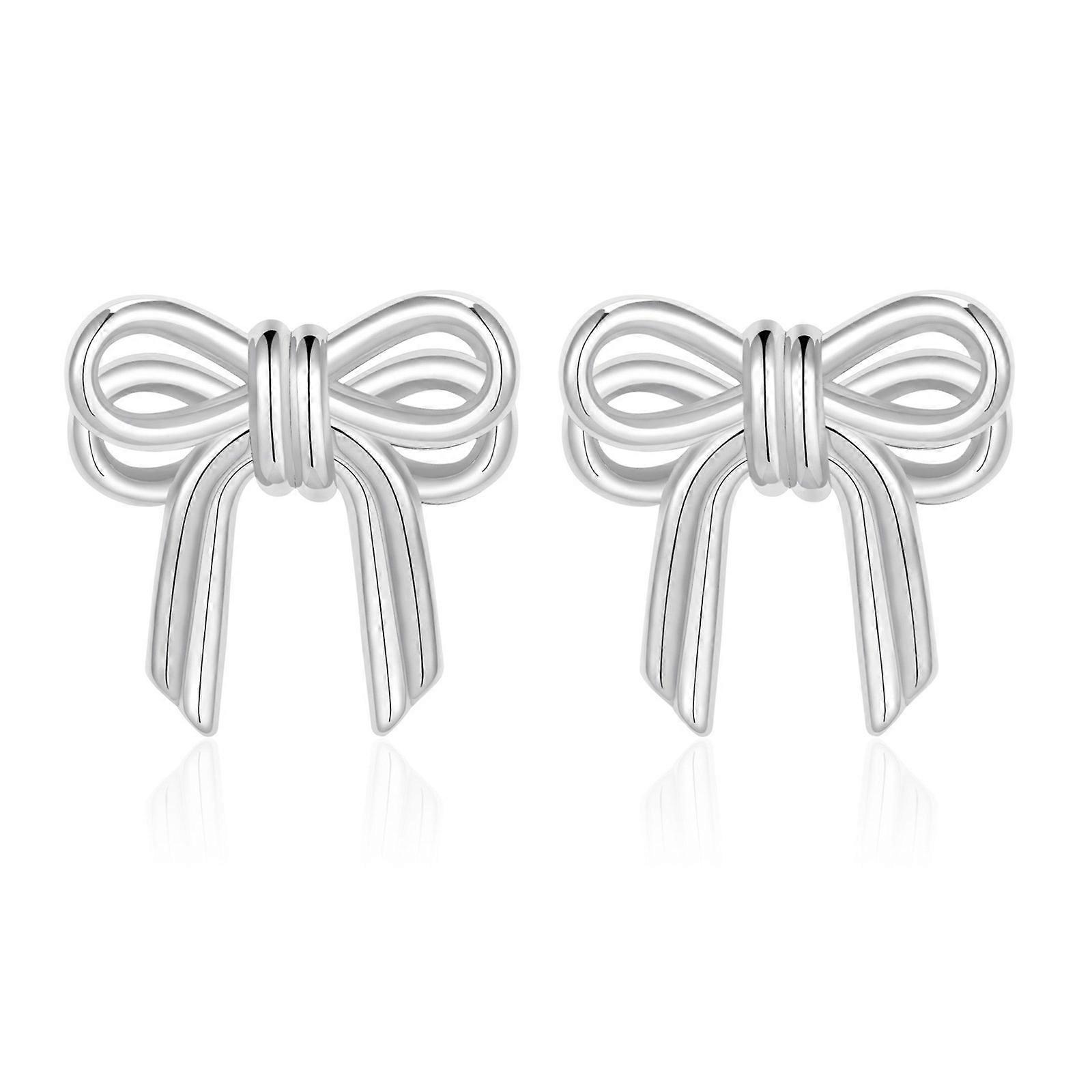 Simple Elegant Ear Stud Metal Bowknot Stud Earrings Fashion Piercing Earrings Temperament Jewelry Gift for Women Girls Silver