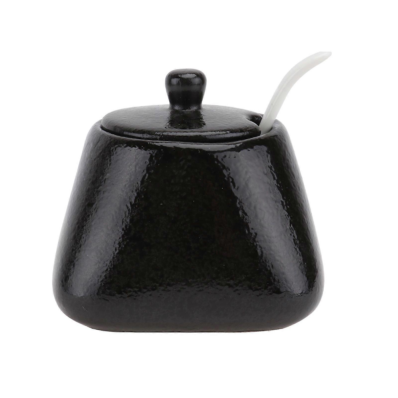 Simple Ceramic Sugar Bowl Salt Pot Pepper Storage Jar Practical Seasoning Pot Container Condiment Spice Box Holder for Home Kitchen (Black)