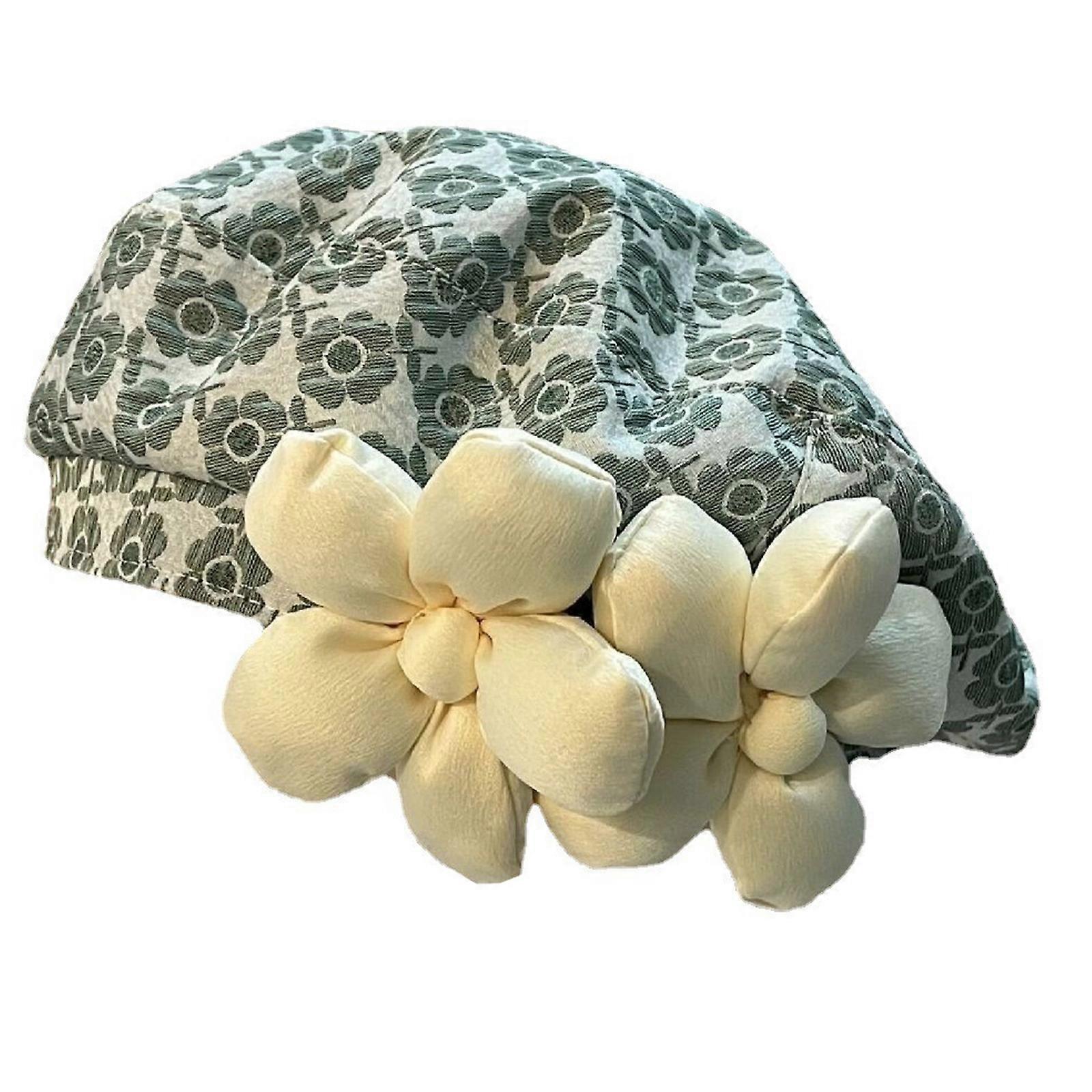 Simple Beret Hat French Beret with 3D Flowers for Sun for Protection Cap Beanies Cap Newsboy Hat Travel Hat Gift for Wom Green