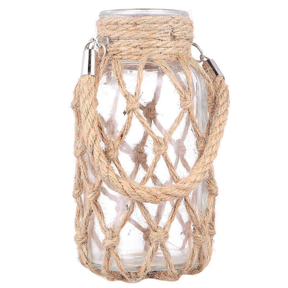 Simple Hemp Rope Glass Vase Hydroponics Planter Green Plant Container Creative Flower Pot for Home Office Living Room