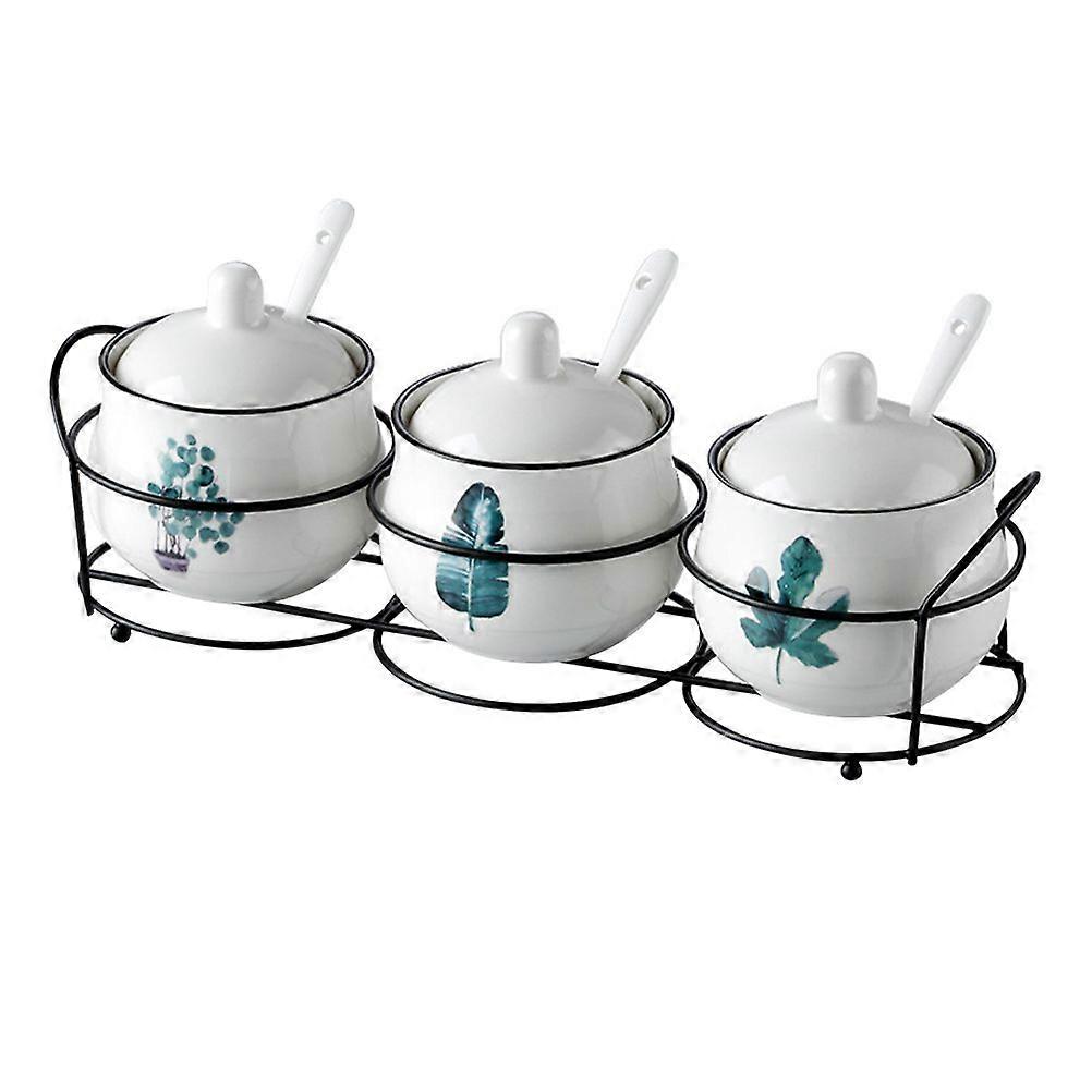 1 set of Seasoning Jar Spice Canister Kitchen Ceramic Seasoning Jar with Spoons