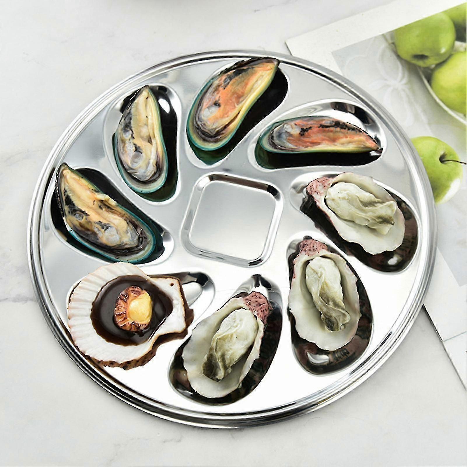 Seafood Plate Multipurpose Food Grade Oyster-shaped Grooves 8 Slots Rust Resistance Oyster Serving Plate for Dining Room KAESI