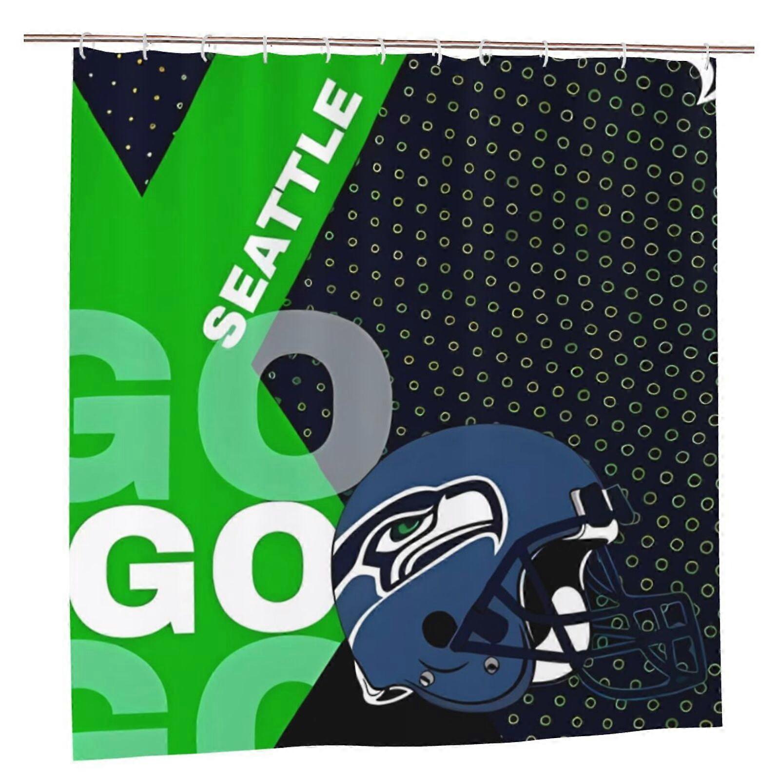 Seahawks Waterproof Shower Curtain 60x72in Quick-Drying with Hooks, American Sports Football Bathroom Decor Plastic Curtains Set