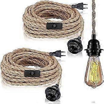 2 Pack Pendant Lights With Switch, Hemp Rope With 4.5m Cable, E27 Socket For Hall, Kitchen, Dining Table, Bar (without Bulb)