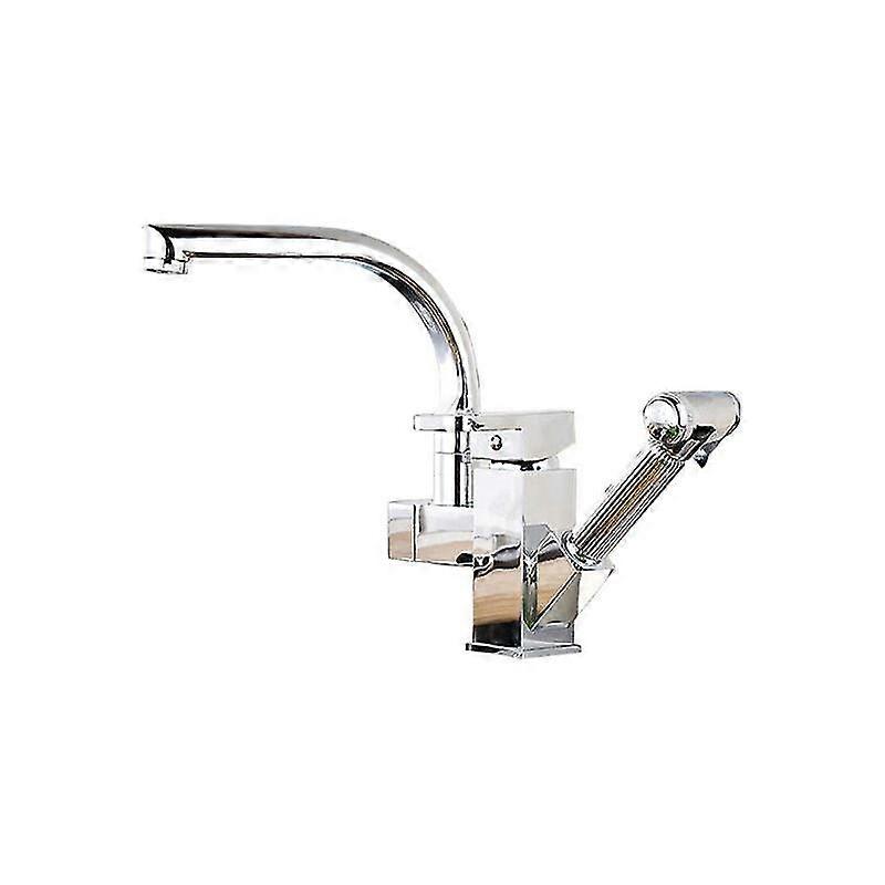 Swivel and Extendable Double Outlet Fashion Mixer Kitchen Faucet -Silver