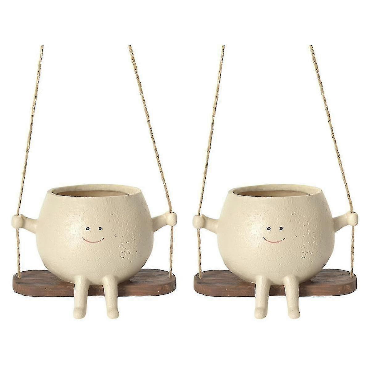 Swing Face Planter Pots, Cute Wall Hanging Resin Flower Head Planters For Indoor & Outdoor, Succulents/cactus Basket