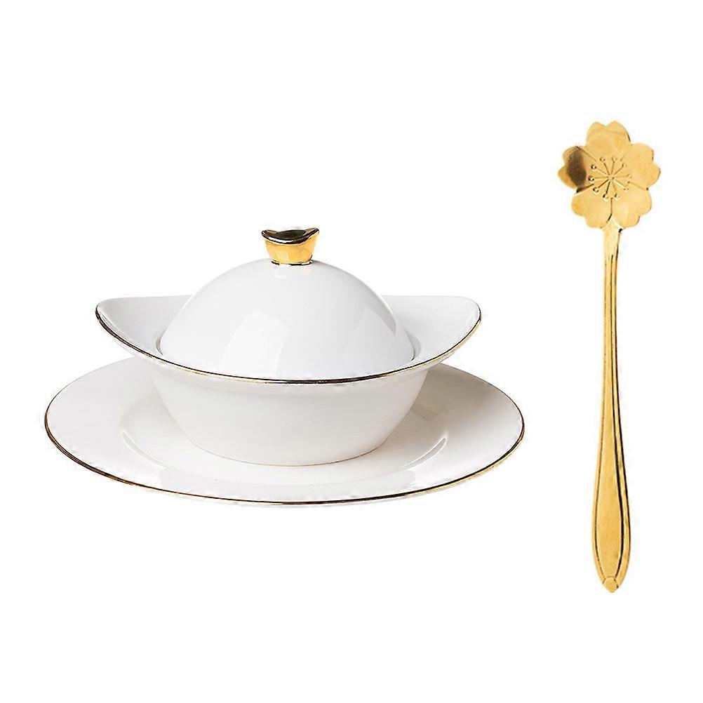 Sweet Dessert Bowl Ceramic Steamed Egg Bowl for Home 1Set White