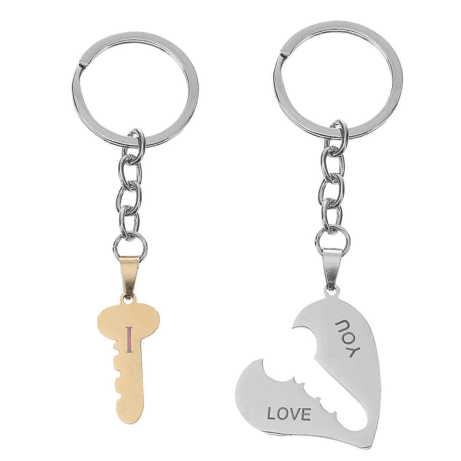 Sweet Couples Keychain Heart Shaped Keyring Set Anti-Corrosion Wear-Resistant For Valentine's Day 2Pcs