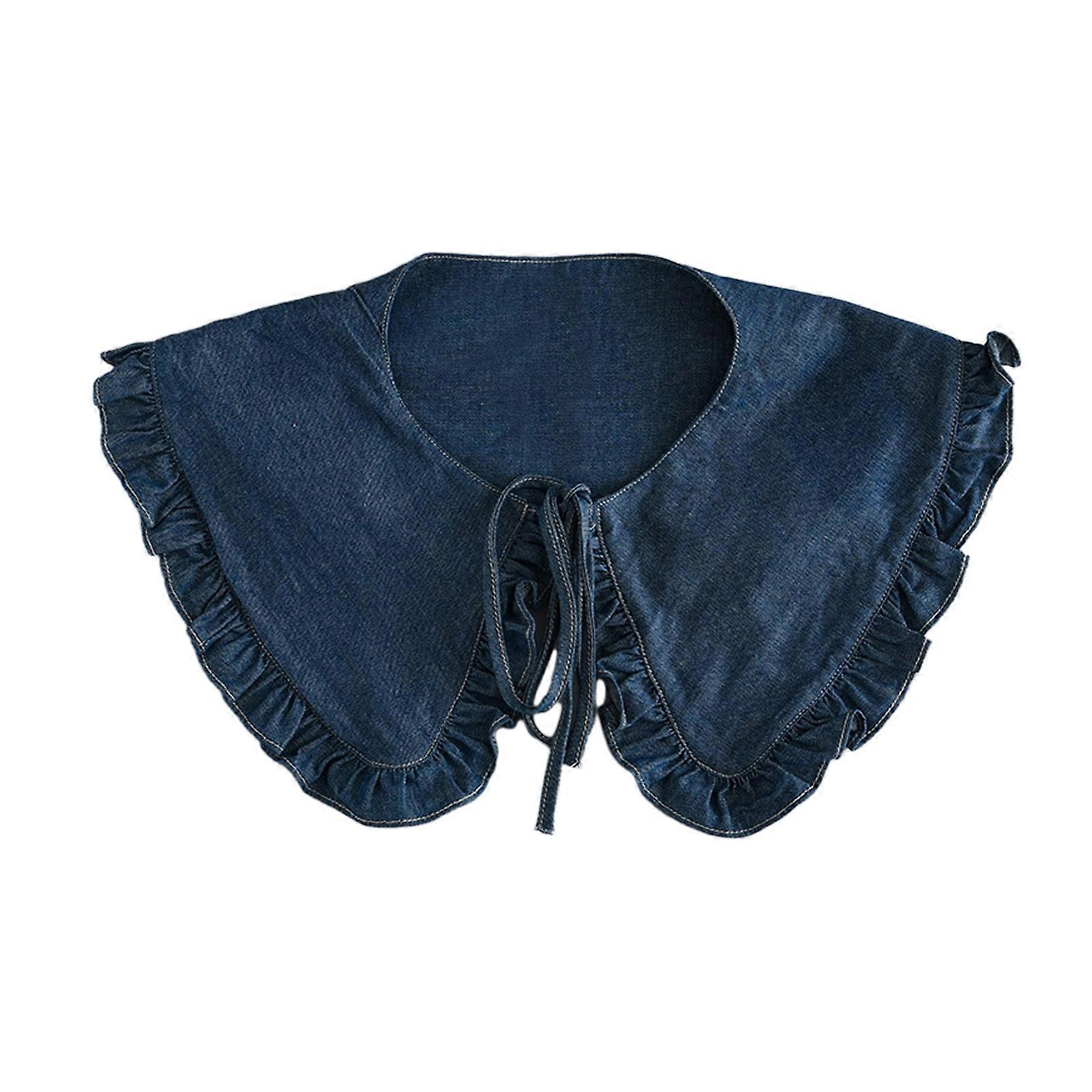 Sweet Style Pleated Trim Decorative Collar Fabric Sewing Applique DIY Neckline Adjustable Size Anti-Slip Shirt Collar Blue