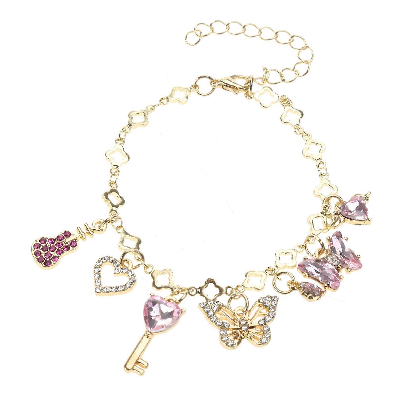 Sweet Sparkling Zircon Bracelets Elegant Wristband Adjustable Butterfly Charm Bangle Wristwear Jewelry for Women Girls
