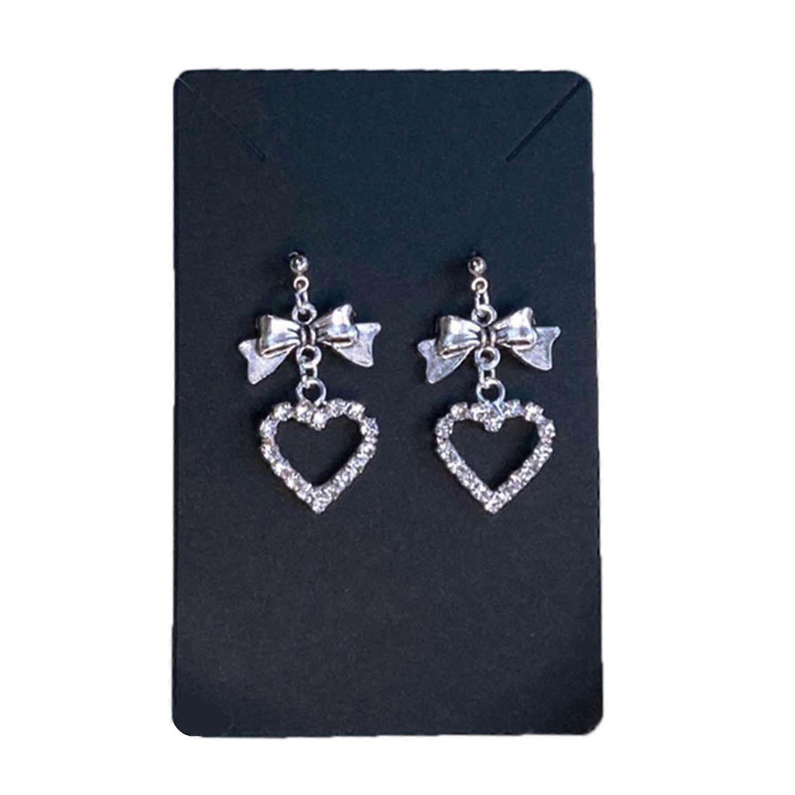 Sweet Bowtie Earrings Gothic Punk Style Hollowed Heart Cross Pendant Earwear Trendy Ear Jewelry for Women and Girls