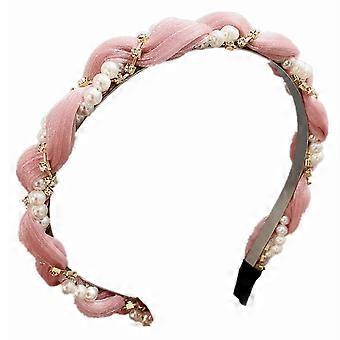 Sweet Women's Wavy Hair Hoop Faux Pearl Rhinestone Inlaid Headband Headwear Qinhai