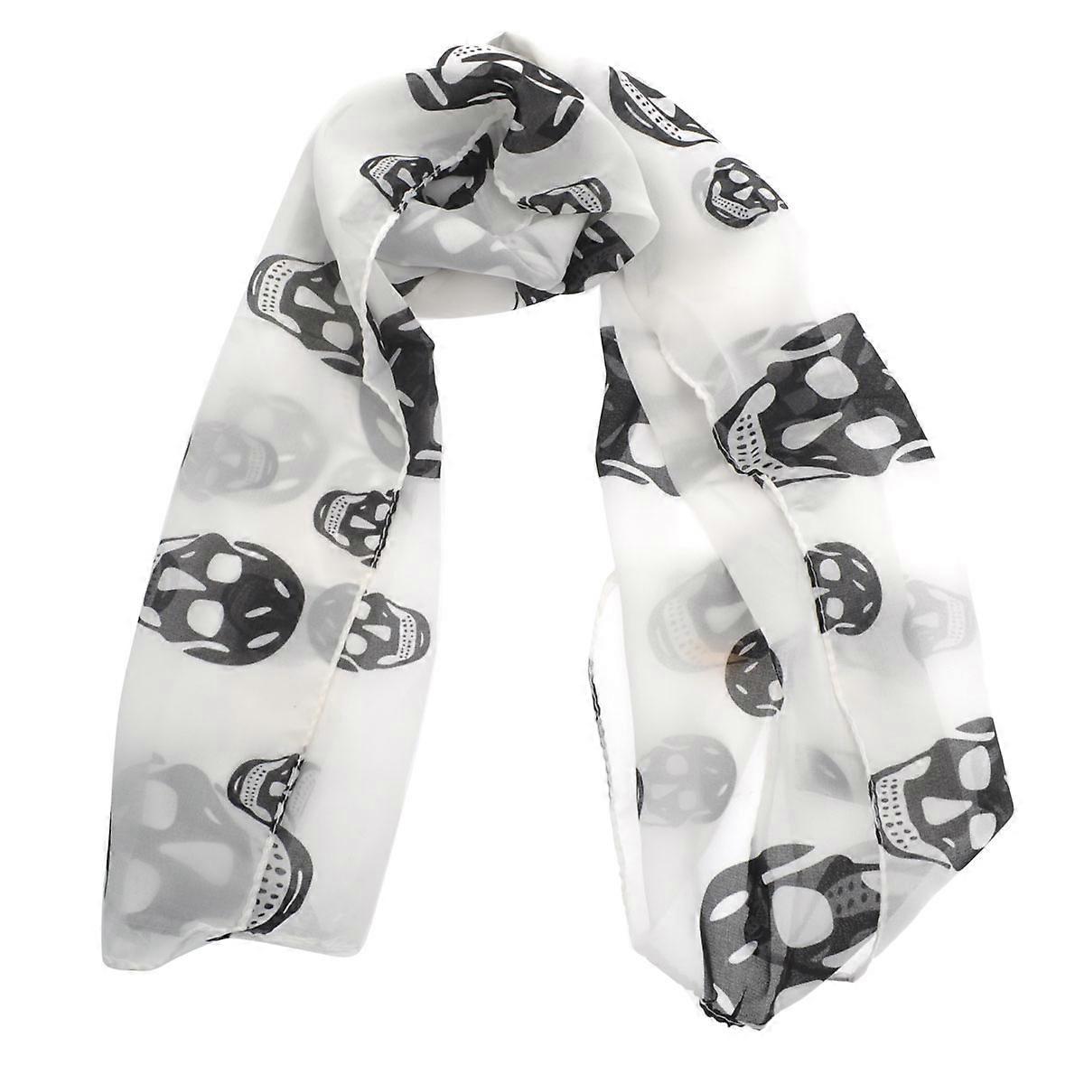 Skull Themed Scarf Chiffon Long Shawl Wrap 150*50cm White For Women Girls 1Set