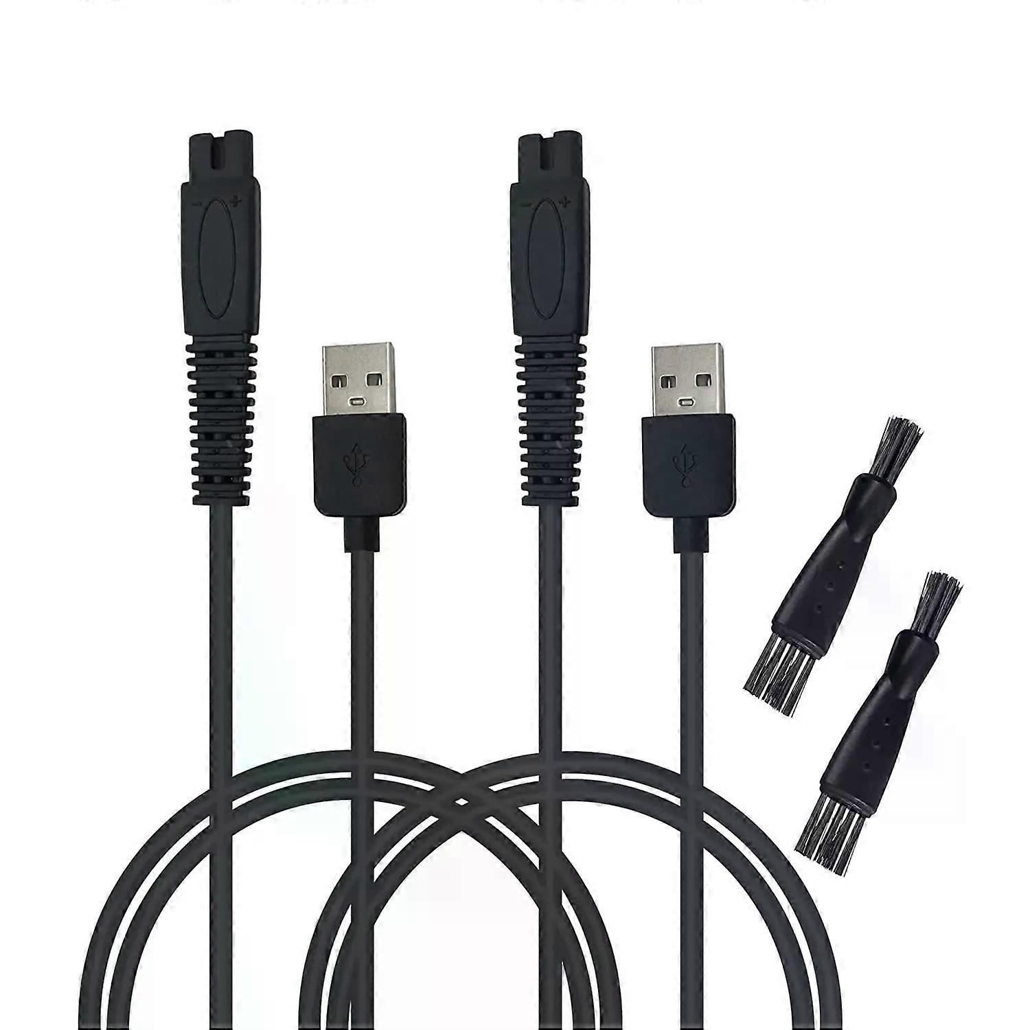 2pcs solo Charger for Skull Shaver Pitbull/Palm/Silver MicroTouch Solo Razor USB Power Cord Accessories and Clean Brush 2Pack