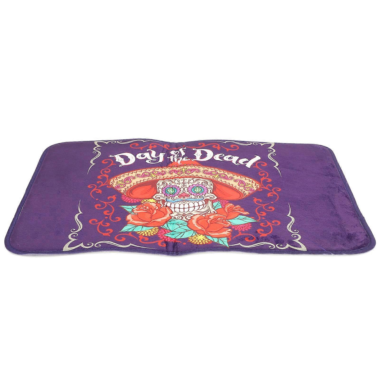 Skull Skeleton Flowers Kitchen Mat Halloween Home Style Non-Slip Cushioned 60x40cm 1Pcs