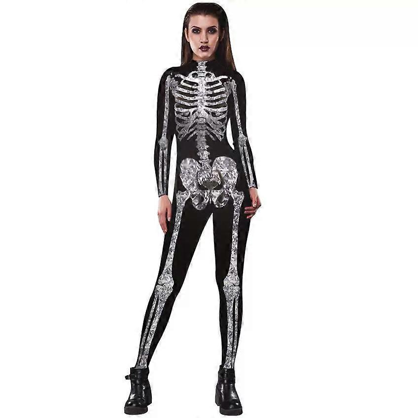 Skull digital 3d printed bodysuit women's halloween carnival cosplay show costume-A
