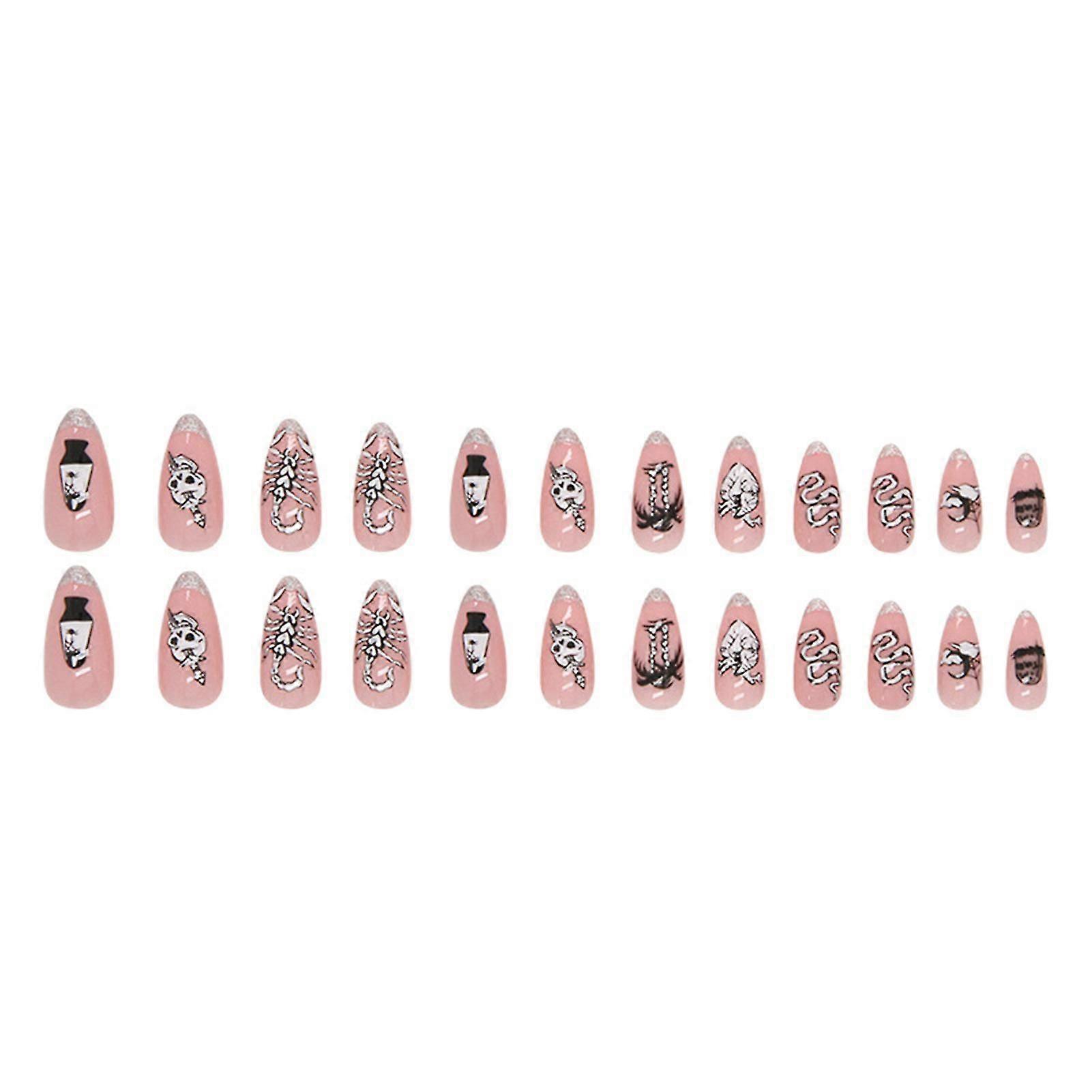Skull Tombstone Almond Fake Nails Plastic Nails Glossy Glue On Fake Nails Jelly Glue Model