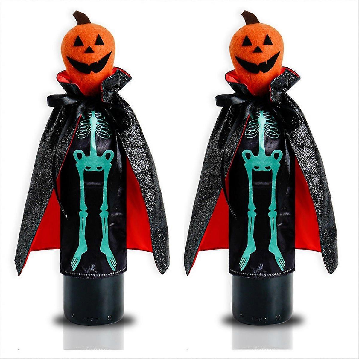 Skull Pumpkin Red Wine Bottle Bag Spooky 12-Inch Decorative