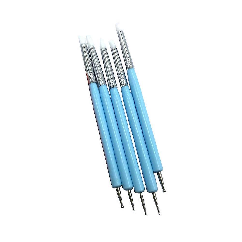 Sculpting Tools Dotting Pen with Metal Ball End for Manicure Hobbyists Blue 5Pcs