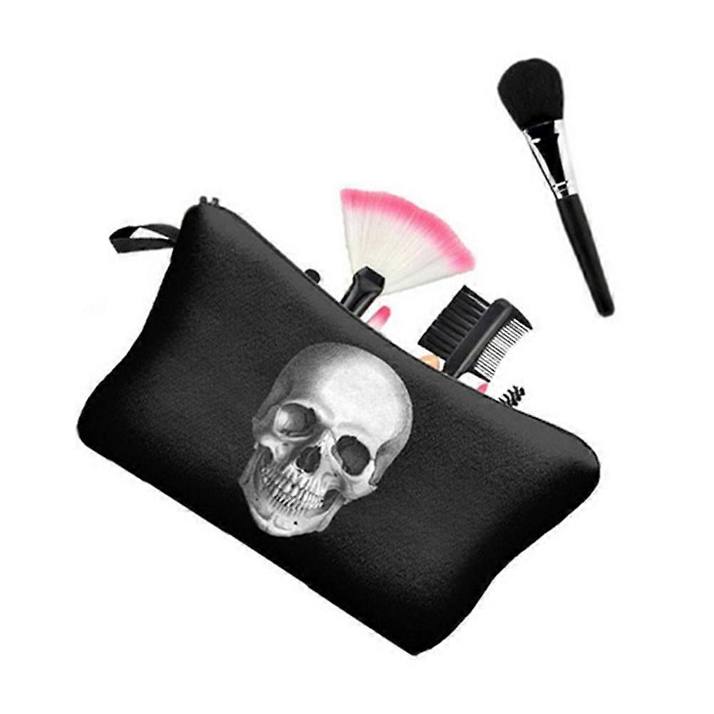 Skull Printing Cosmetic Small Pouch Makeup Handbag for Home Outdoor Holiday (Black)