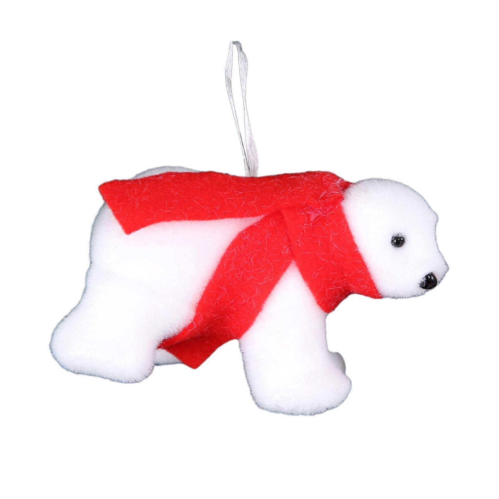 Plush White Bear with Scarf Ornaments Christmas Doll Pendant for Christmas Tree Home Decorations Cartoon Pendants Gift Red