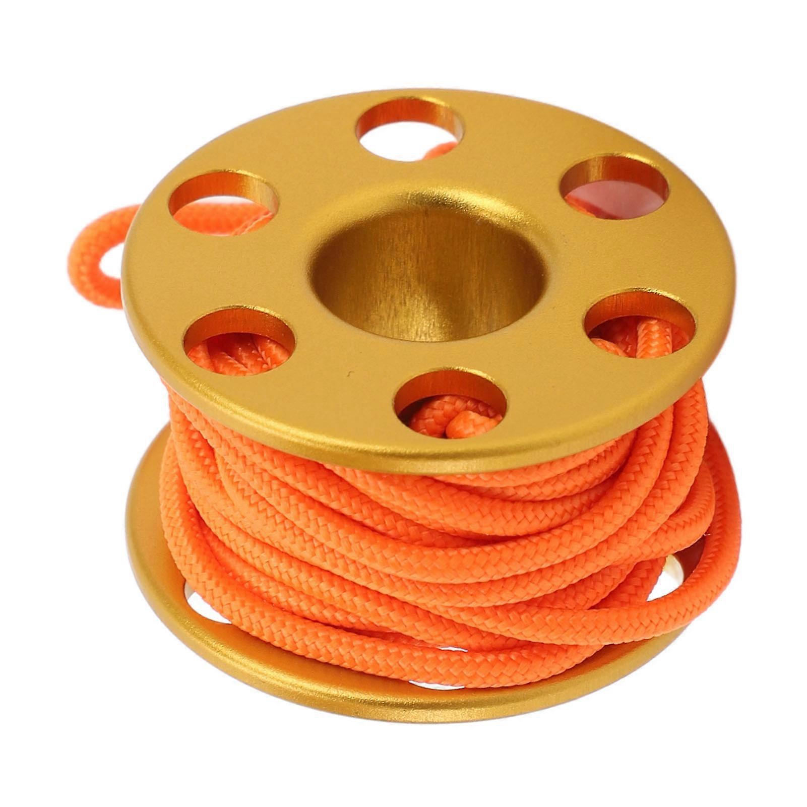 Scuba Diving Finger Reel Aluminum Alloy Mini Finger Spool Reel Pendant with Glow in The Dark Nylon Guide Line for Underwater Cave Diving Gold
