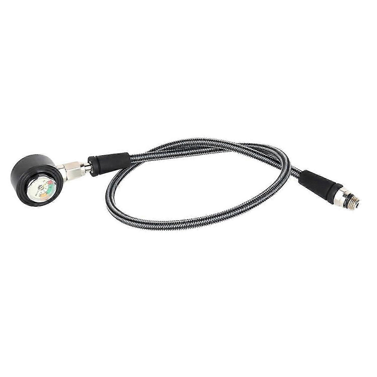 The pressure gauge is connected with extension hose, it is more convenient when you use it underwater and you need to check how much air left. High-quality aviation aluminum materials are safe and durable. The threaded protective sleeve protects the interface.<br><br>Colour:Black Material:Aluminum alloy + nylon Size:65cm<br><br>Package Contents: 1 x Diving pressure gauge<br><br>Only the above package content, other products are not included. Note: Light reflection and different displays may cause the color of the item in the picture a little different from the real thing. The measurement allowed error is +/- 1-3cm.