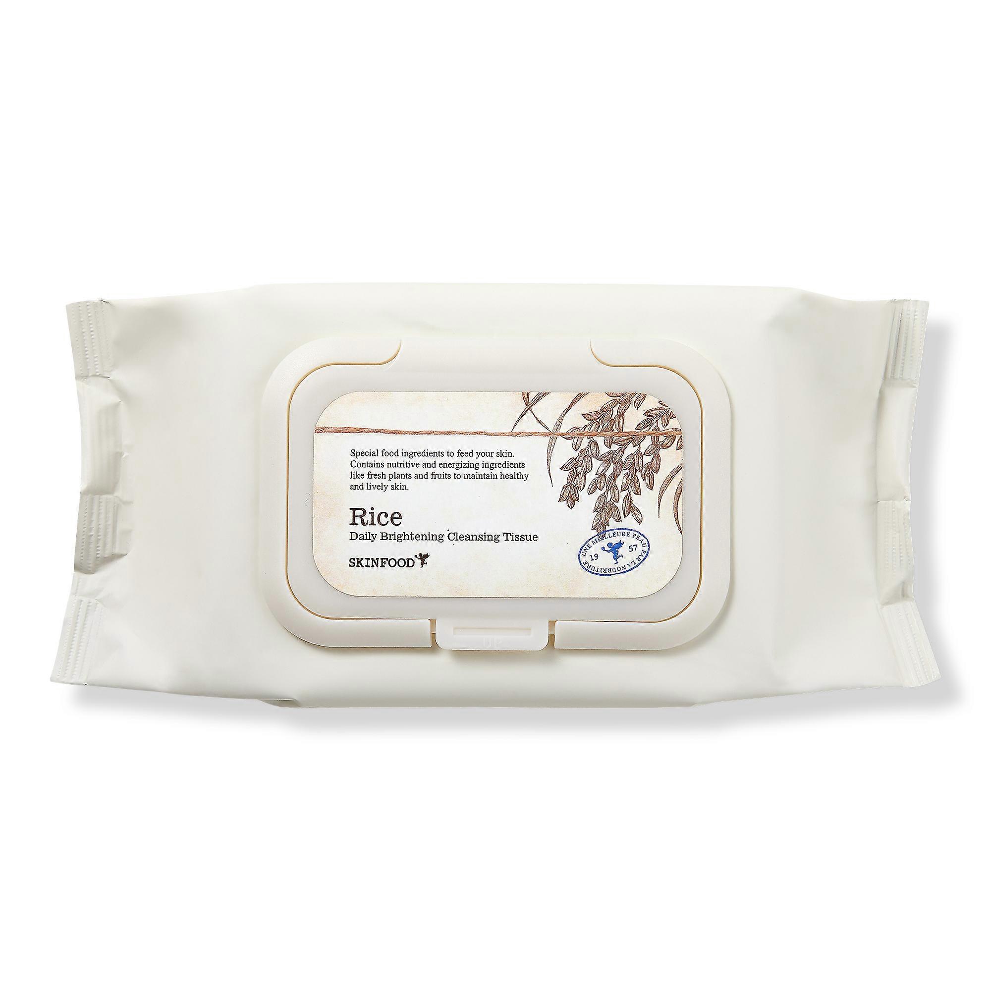 SKINFOOD's Rice Brightening Tissue is a cleansing tissue containing rice bran water that removes makeup while leaving skin bright and refreshed.BenefitsA refreshing cleansing tissue to quickly remove stubborn makeup and impurities for a clean and clear complexionThick and cushiony tissue is soaked with cleansing water to minimize irritation while gently lifting impurities and makeupKey IngredientsOdae Rice Bran Water from Cheorwon Provence in South Korea is rich in protein, Vitamin B and minerals to nourish and clear skin for a boost of radiance Inactive Ingredients: Water, PEG-6 Caprylic/Capric Glycerides, Butylene Glycol, Methylpropanediol, PEG-20 Glyceryl Triisostearate, Oryza Satvia (Rice) Bran Water, Oryza Satvia (Rice) Extract, Aspergillus Ferment, 1,2-Hexanediol, Chondrus Crispus (Carrageenan Extract), Glycosyl Trehalose, Hydrogenated Starch Hydrolysate, Sodium Hyaluronate, Polyglutamic Acid, Cladosiphon Okamuranus Extract, Glycerin, Coco-caprylate/caprate, Hydrogenated Olive Oil, Phenoxyethanol, Ethylhexylglycerin, Sodium Benzoate, Disodium EDTA, Fragrance. Suggested Use: Lift the sticker and take out a tissue. Gently wipe off makeup and impurities from face. When cleansing around the eyes, close your eyes and gently wipe, keeping the product out of your eyes. After use, close the cover to prevent the contents from drying out.