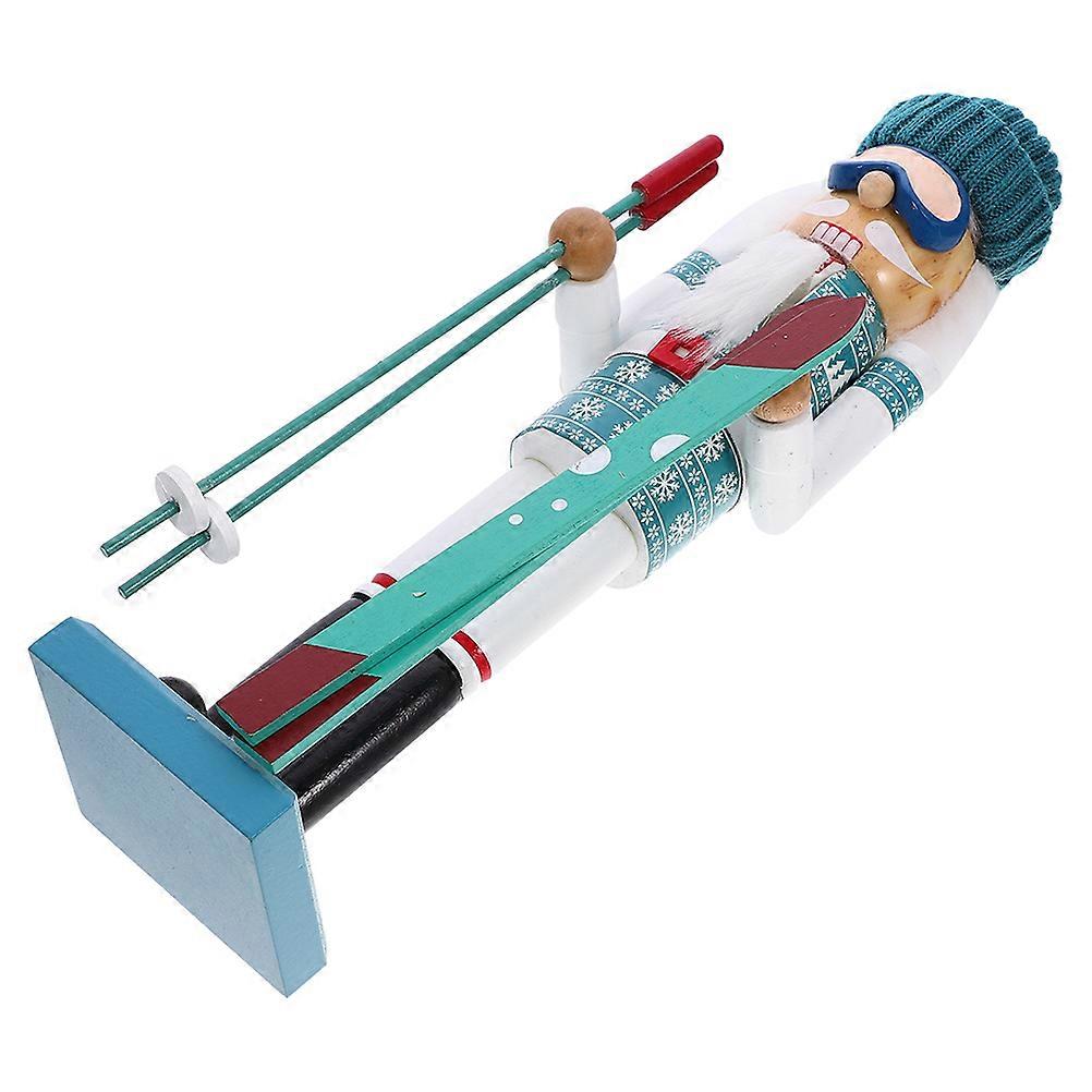 Skiing Nutcracker Ornament Cute Wooden Soldier Decor Desk Craft Christmas Decor Friends 1Pcs