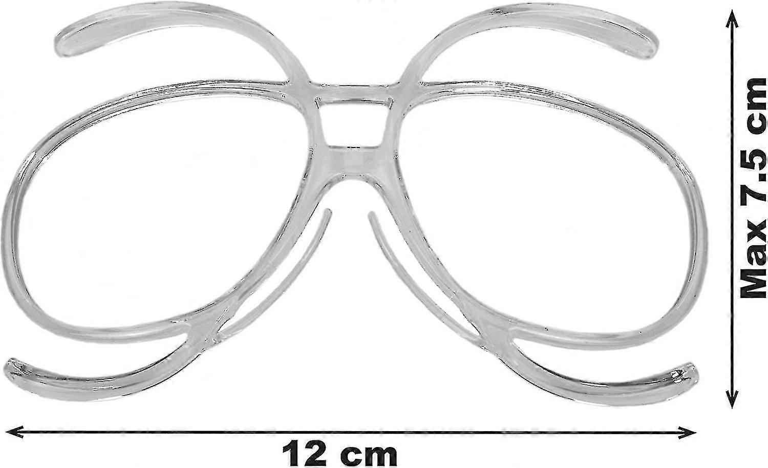 provides the solution if you can't go skiing, climbing or snowboarding without your corrective lenses in place (also perfect for motocross and mountain biking goggles) Made from a highly durable TR90 composite, the insert is designed to fit into any adult-size ski or motocross goggle by way of sprung arms that simply clamp themselves to the inside of the lens Corrective lenses up to a strength of plus or minus 4.5 SPH can easily be added to the insert by any reputable optometrist, or we can help - contact us for details Manufactured by one of the UK's leading brand of specialised sports eyewear products Can be used for distance, bifocal and varifocal optical correction Delivery quantity: 2pcs Product color: transparent Product size: 12*6.3CM