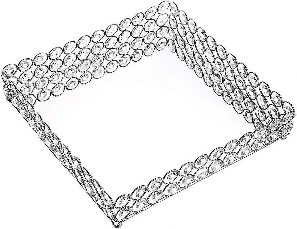 Square Crystal Mirror Tray Trinket Tray, Decorative Silver Tray Vanity Tray for Jewelry Cosmetic Makeup Perfume Storage, 27x27cm