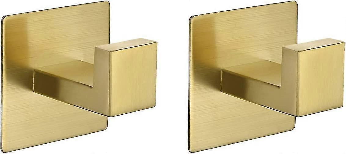 Square Sticky Wall Hook Sus 304 Stainless Steel Bathroom Towel Hook Bathrobe Coats Versatile Adhesive Hook No Drilling, Brushed Gold - Pack Of 2