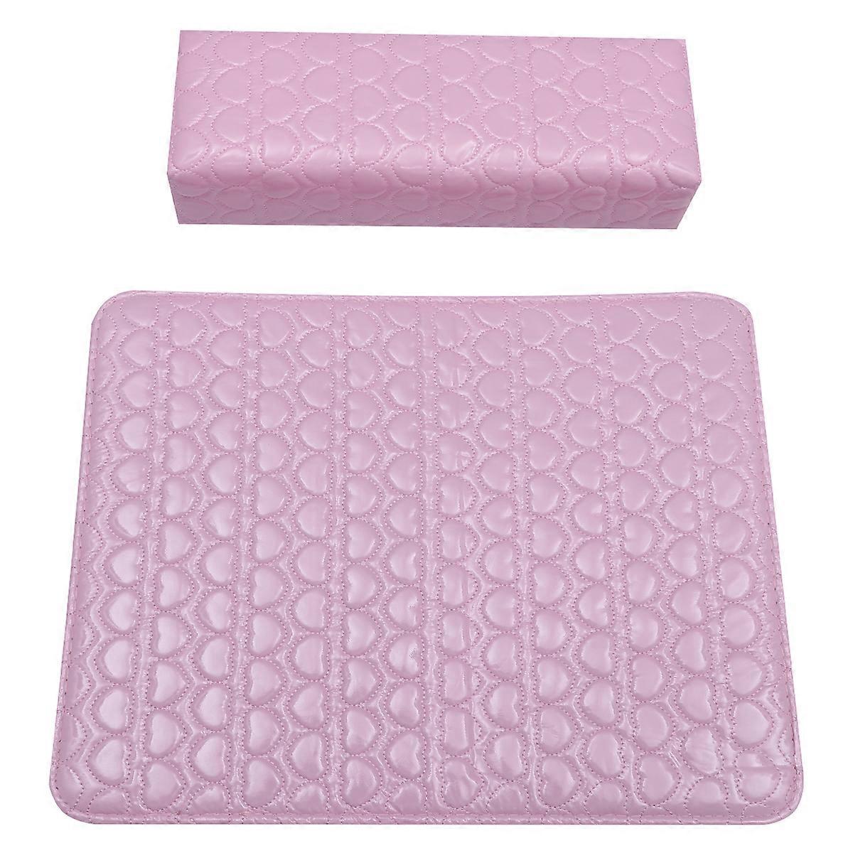 Square Nail Salon Cushions Set Heart Pattern Hand Pillow Pad PU Leather Manicure Wrist Rest (Pink)