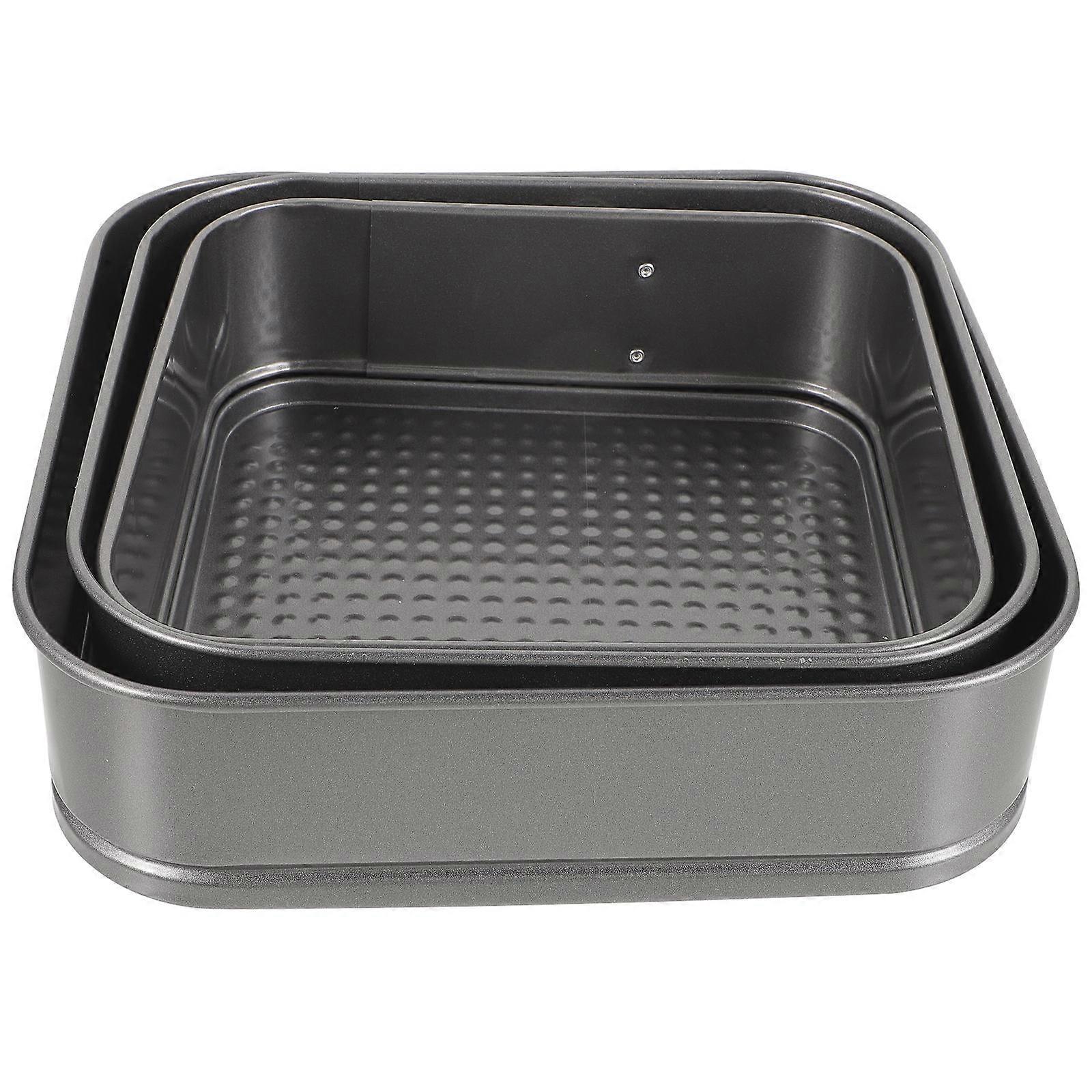 Square Baking Mold Non-Stick Carbon Steel Live Buckle Honeycomb Live Bottom Home Baking Party Wedding 20cm 3Pcs
