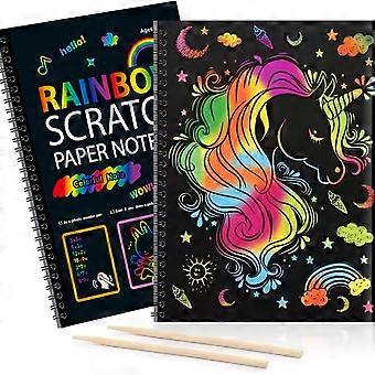 Scratch Paper Creative Art Rainbow Paper Sketch Book+Bamboo Pen Rulers