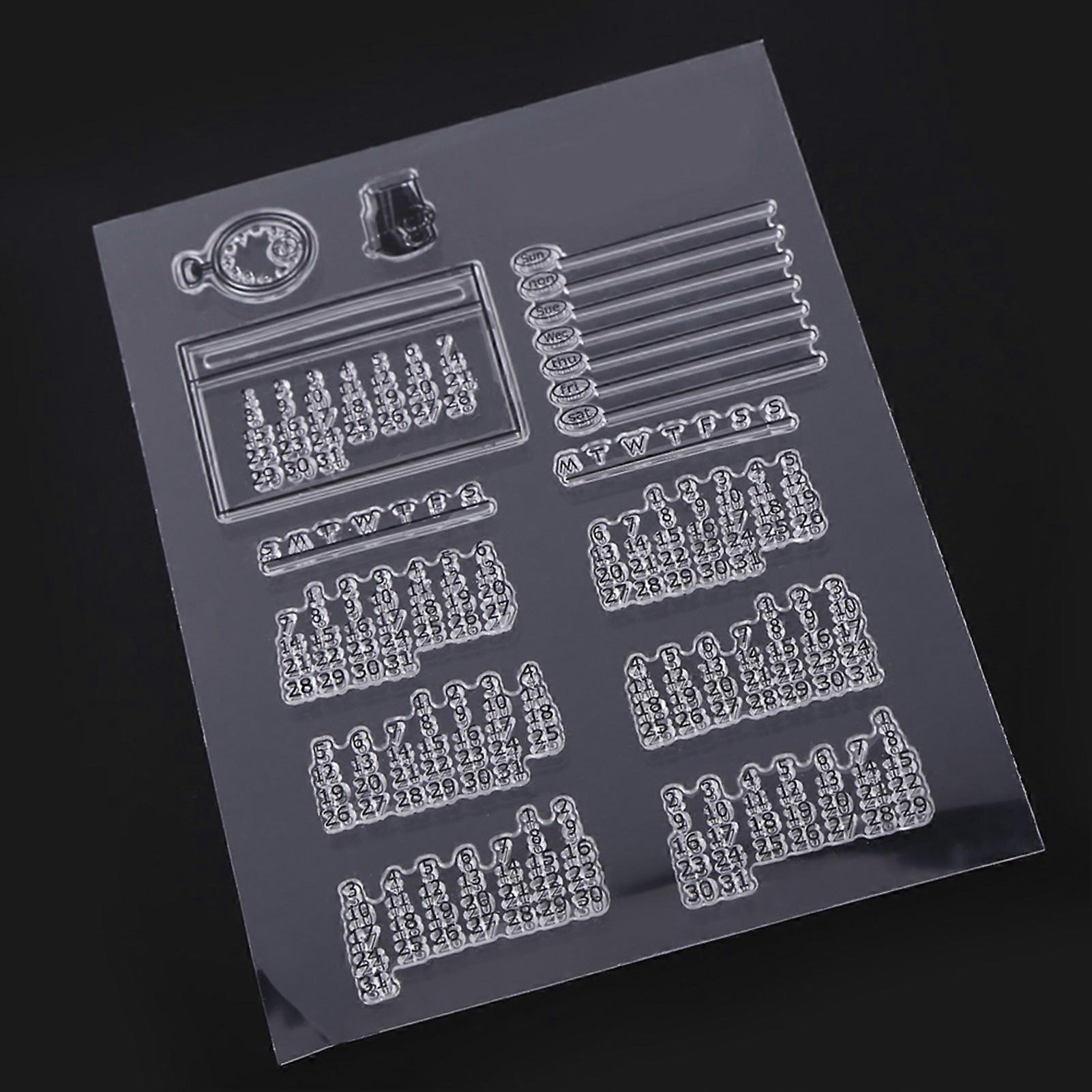 Description: Use these stamps to create beautiful homemade cards for scrapbook pages to decorate journals or to enhance any paper craft. Stamp these images on white and black cards then color in. They work great and produce nice, clean images. Convenient to wash with water or wipe with wet towel, do not use corrosive solvent to clean. It is a great set to have. Features: Made of silicone material, healthy and do not stimulate skin, safe for kids to play with. Soft and textured, easy to use, combined with different patterns, enough to meet your needs. Clear stamp set is good for creating greeting cards, scrapbook pages, albums, home decor and more. Can be arranged and rearranged stamp patterns for a lot of creative combinations. Simply peel the desired image or images off the plastic index sheet and position on a clear acrylic block. Apply ink and stamp with light pressure. Specifications: Material: Silicone Pattern: Calendar Size: 16 x 11cm / 6.3 x 4.33" Weight: 23g(approx.) Instruction: 1, Remove the stamp from the protective sheet and stick it onto an acrylic block. 2, Ink the stamp. 3, Stamp firmly onto your paper. 4, Clean up with water after use. Package Includes: 1 Set x Silicone Stamps Note: Please allow 1-3cm error due to manual measurement. Thanks for your understanding.